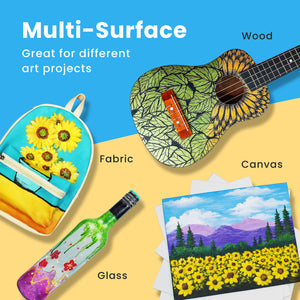 Versatile for most art techniques and suitable on most painting surfaces including Canvas, Paper, Glass, Clay, Wood, Rocks, Fabric, Leather & Ceramics