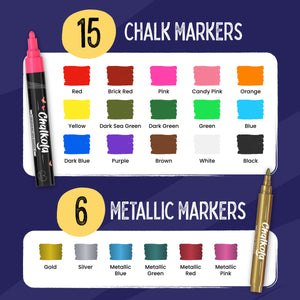 Chalkola Chalk Pens & Metallic Colours - Pack of 21 Chalk Markers