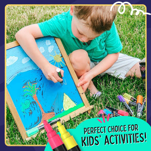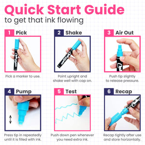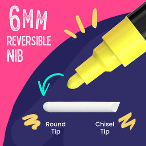 From bright neons to bold classics and glimmering metallics, this set of 21 chalk markers has every vibrant color you need to create incredible artworks for home, work, school, or play. Compared to dull and dusty traditional chalk, these liquid chalk pens are non-toxic, kid-safe, easy-wash, and work perfectly on any non-porous surface. Use them to design glassware, ceramics, party favors, signs, ornaments, cafe menus, windows, displays, and other things–and make everything shine and stand out!