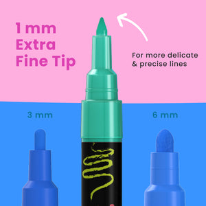 With their reversible nib, smooth application, and 20 fresh and vibrant colors, these acrylic paint markers are one of the most versatile and convenient art supplies you can have to get creative whenever and wherever. Kid-safe, non-toxic, and great on virtually any surface, you’re guaranteed to come up with so many different ways to create and color with these brilliant paint pens each time. Just choose your nib size of choice and start your colorful and endless art-ventures!